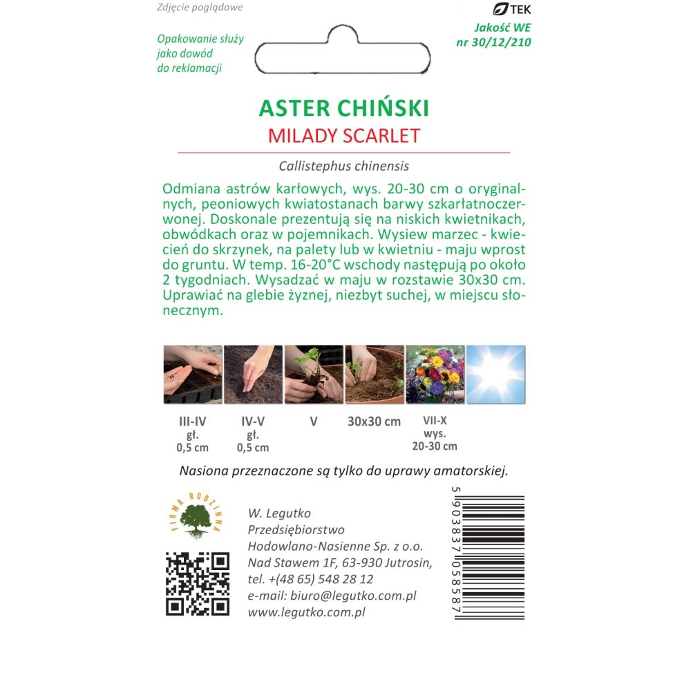 Odrůda zakrslých aster, 20-30 cm vysoká, s původními, pivoňkově zbarvenými červenými květenstvími. Skvěle vypadají na nízkých záhonech, obrubách i v nádobách. Výsev od poloviny března do konce dubna do krabic, na palety pod kryty nebo v dubnu přímo do země. Při teplotách 16-20° dochází ke vzcházení přibližně po 2 týdnech. V květnu vysaďte na trvalé stanoviště ve vzdálenosti 25 x 30 cm. Pěstujte v úrodné, ne příliš suché půdě, na slunném místě.