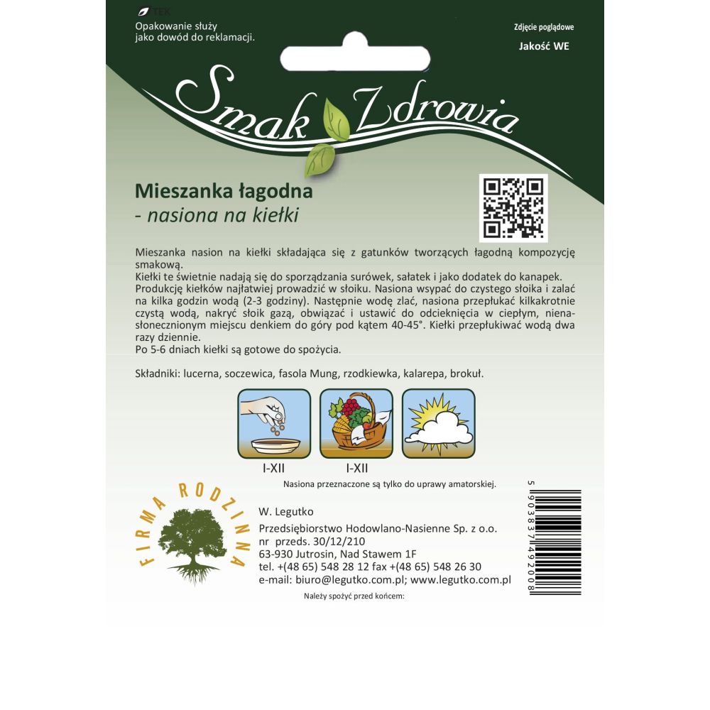 Směs semen pro klíčky sestávající z druhů vytvářejících jemnou chuťovou kompozici. Obsahuje fazole mungo, vojtěšku, červené zelí, ředkvičky a semínka čočky. Díky druhové rozmanitosti získáme v jedné porci velkou dávku živin, vitamínů a minerálních solí. Tyto klíčky se skvěle hodí k přípravě salátů, salátů a jako příloha k chlebíčkům. Jak vyrobit klíčky: Propláchnutá semínka nasypte do čisté sklenice a na několik hodin zalijte vlažnou převařenou vodou. Poté vodu slijte, semena opláchněte, sklenici přikryjte gázou, zavažte a umístěte na teplé místo bez slunečního záření. Dvakrát denně klíčky opláchněte a slijte vodu. Po 4-5 dnech jsou klíčky připraveny k jídlu.