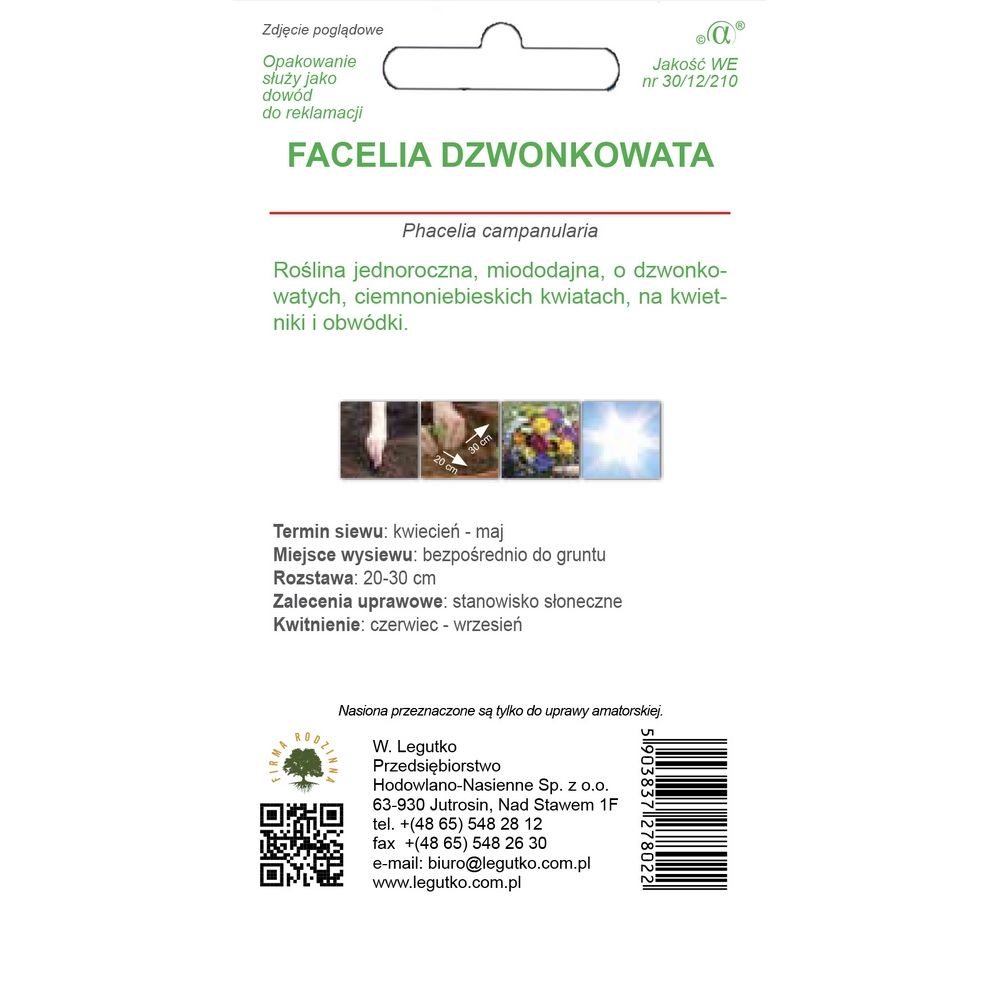 Jednoletá, medonosná rostlina, 20-30 cm vysoká, silně větvená. Vytváří zvonkovité, azurově modré květy shromážděné v okolí. Kvete od června do září. Semena vysévejte v dubnu, v květnu přímo do země do 25-30 cm řádků. Vyžaduje slunné stanoviště, citlivé na přebytečnou vodu. Roste na jakékoli půdě. Použití: květinové záhony, obruby.