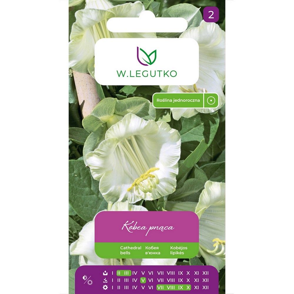 Jednoletá popínavá rostlina s bílými květy. Vynikající réva pro pokrytí: zdí, altánů, verand, balkonů, zahradních mříží. Vyžaduje úrodnou, hlinito-humózní půdu, dostatečně vlhkou. Výsev semen v únoru až březnu do květináčů pod kryty. Při teplotách 18-22°C dochází ke vzcházení přibližně po 3 týdnech. Koncem května je vysaďte na své stálé místo ve vzdálenosti 40 cm. Vyžaduje úrodnou, hlinito-humózní půdu, dostatečně vlhkou. Slunná poloha nebo polostín.