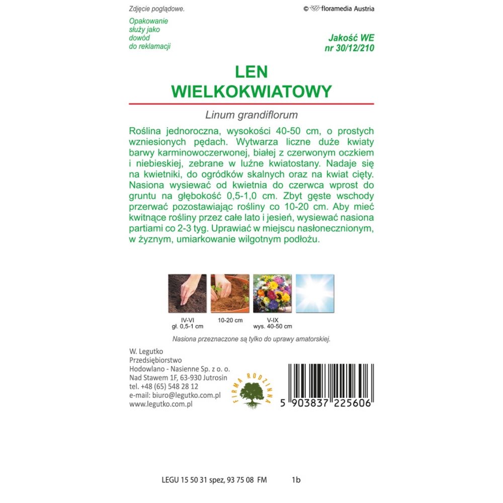 Jednoletá rostlina, 40-50 cm vysoká, s rovnými, vzpřímenými výhony. Vytváří četné velké karmínově červené, bílé s červenýma očima a modrými květy, shromážděné v četných květenstvích. Hodí se do záhonů, skalek i jako řezaná květina. Semena vysévejte od dubna do června přímo do země do hloubky 0,5-1,0 cm. Příliš husté vzcházení je třeba přerušit a nechat rostliny každých 10-20 cm. Aby rostliny kvetly po celé léto a podzim, vysévejte semena v dávkách každé 2-3 týdny.Pěstujte na slunném místě, v úrodné, mírně vlhké půdě.