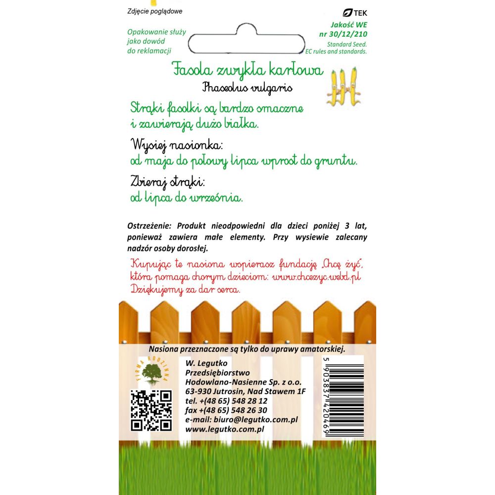 Fazolové lusky jsou velmi chutné a obsahují hodně bílkovin. Semena vysévejte od května do poloviny července přímo do země. Sbírat lusky: červenec až září. Výsevem semínek se vaše dítě hrou učí základům zahradničení a ekologie.