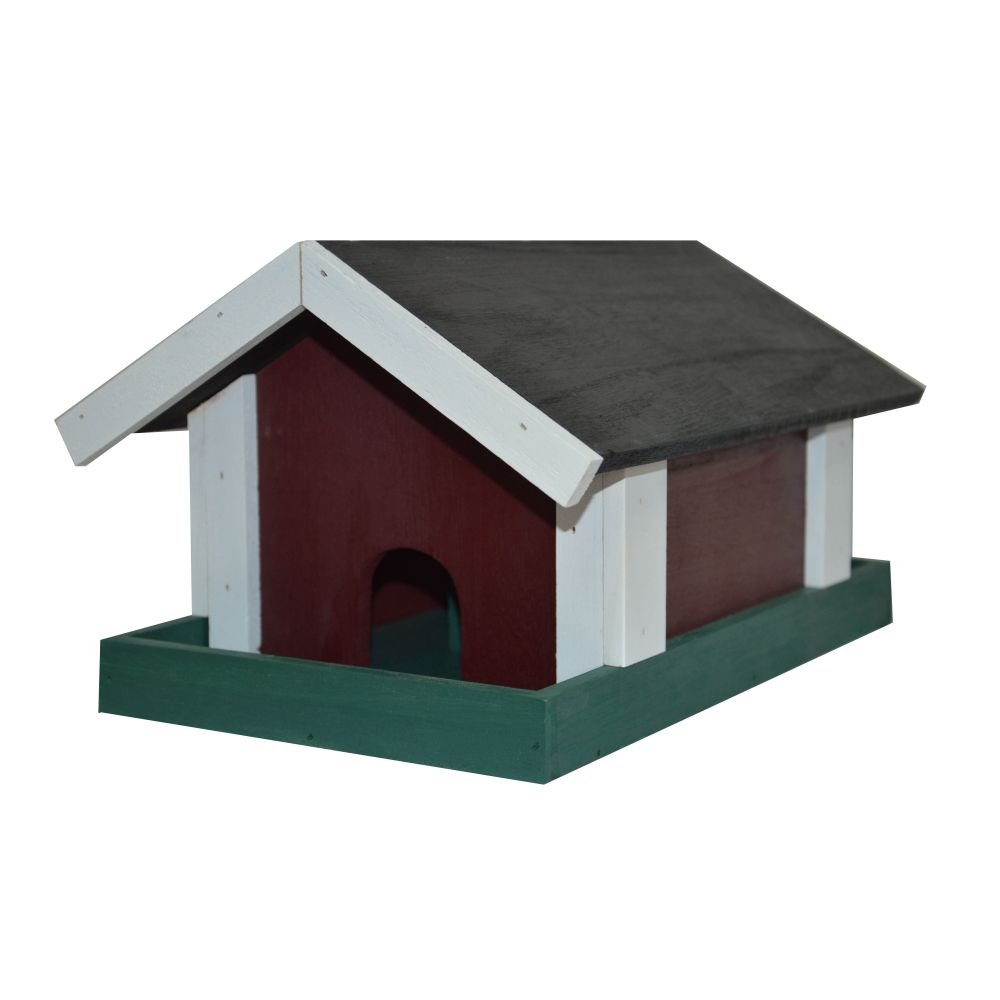 Červený domeček, dávkovač s bílým povrchem. Vhodné pro umístění na dřevěnou tyč. Rozměry: 20,5x30,5x18 cm.