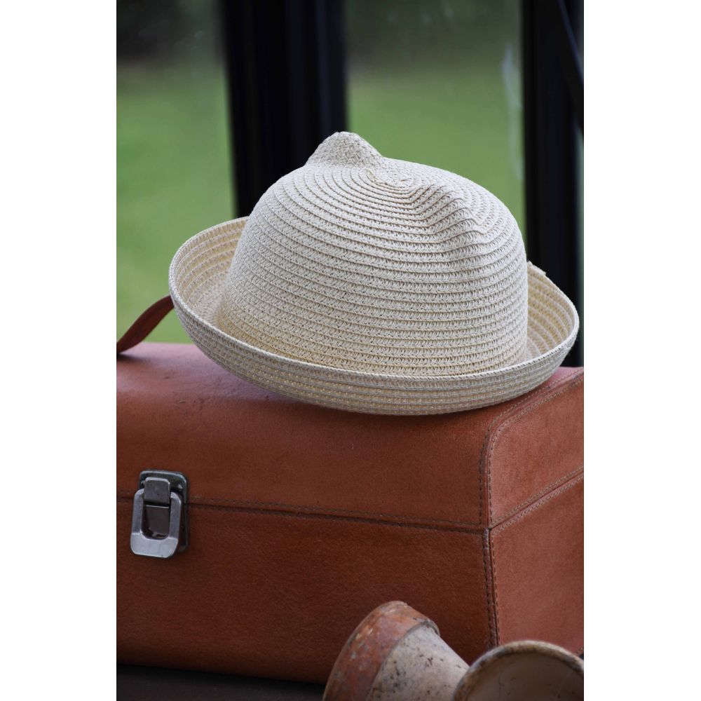 Okouzlující dětská čepice s ohrnutým okrajem a zajímavým motivem uší. Uvnitř má pod bradou staženou gumičku pro lepší stabilizaci na hlavě. Produkt vyrobený z přírodních materiálů. Poskytuje ochranu hlavy ve slunečných a horkých dnech.
