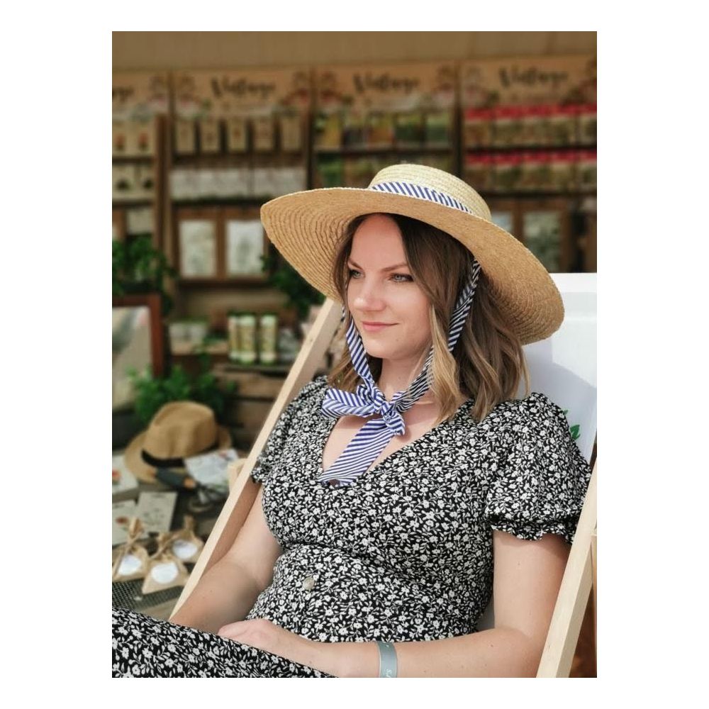 Elegantní dámský klobouk zdobený ozdobnou pruhovanou stuhou, ideální do horkých dnů. Uvnitř má speciální pásky pro nastavení velikosti. Tento elegantní klobouk se perfektně hodí k mnoha letním outfitům. Vázací stuhu lze zcela odstranit.
