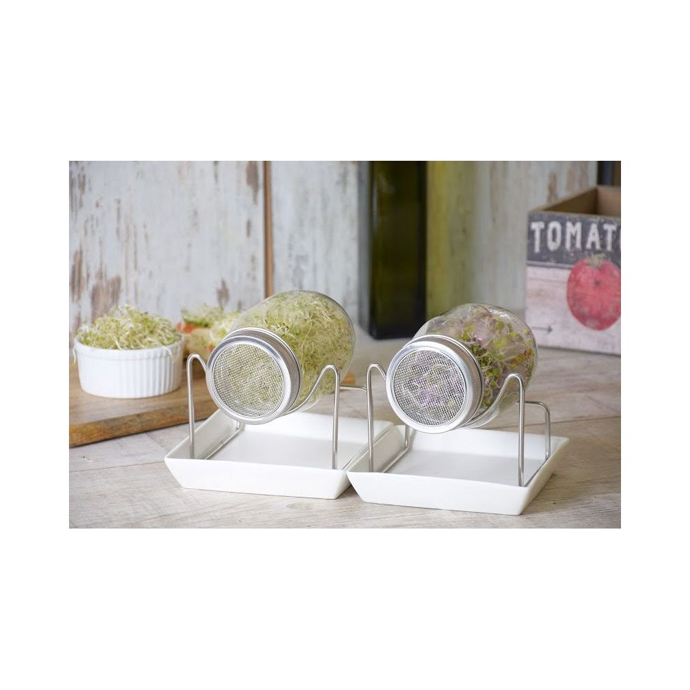 Pokud máte rádi klíčky a chcete si je vypěstovat sami doma, náš skleněný napěňovač v podobě zavařovací sklenice bude perfektní. Je opakovaně použitelný, jde tedy o ekonomický a ekologický produkt. Kovový nerezový stojánek pomáhá udržet dózu ve správném úhlu a keramický stojánek sbírá vodu vytékající z dózy. Moderní design a malé rozměry se hodí do každé kuchyně. Díky této metodě rychle (během několika dní), ekonomicky a snadno získáte výživné, zdravé klíčky. Dóza dobře poslouží při výrobě téměř všech semínek (kromě slizovitých semínek, např. řeřichy, lnu, chia, rukoly). Díky tomuto klíčku už nebudete muset kupovat klíčky v plastových obalech (čímž omezíte znečišťování životního prostředí) a jen po nich doma sáhnete, kdykoli budete mít chuť. Klíčky navíc nepřicházejí do styku s žádnými plasty.