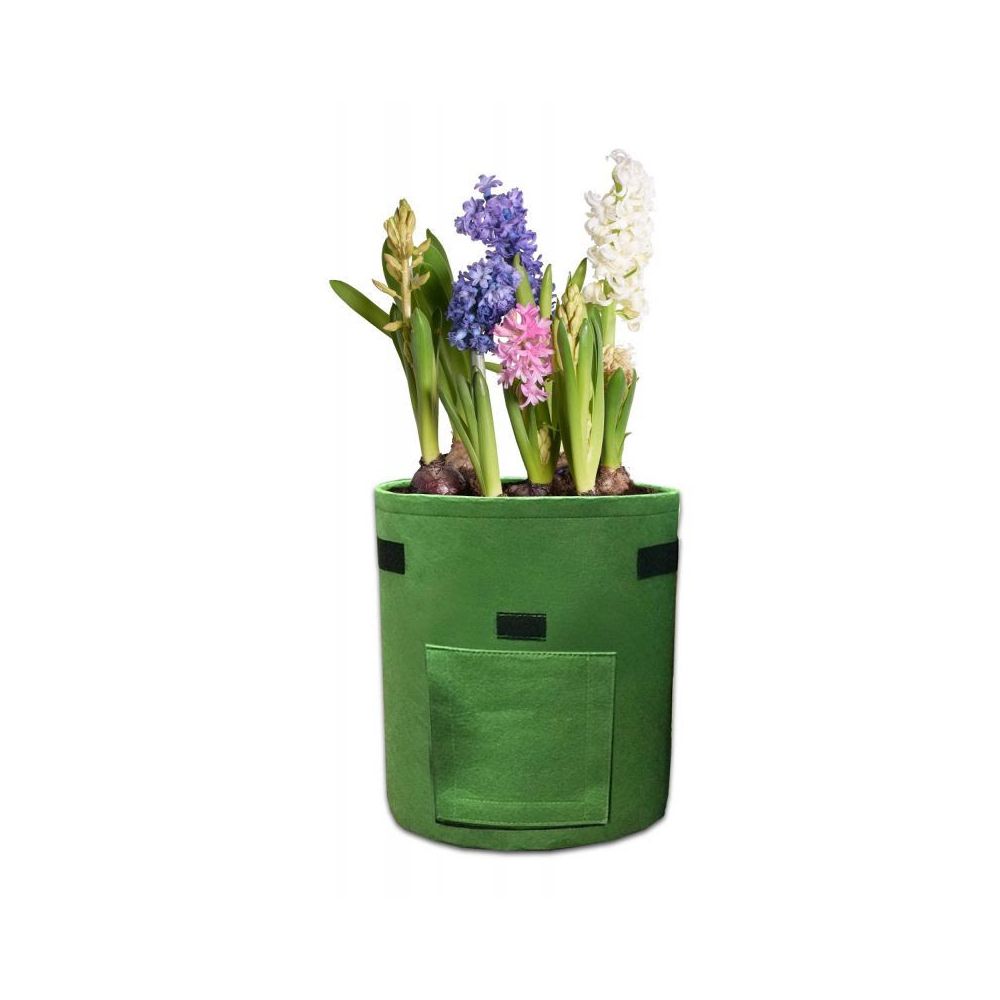 Ekologický materiál z kvalitní prodyšné netkané textilie, která je netoxická a biologicky odbouratelná, odolná a má dlouhou životnost. Provzdušňovací látkové květináče umožňují kořenům dýchat a vyvíjet se zdravěji, zvyšují růst a výnosy. Opakovaně použitelná taška.