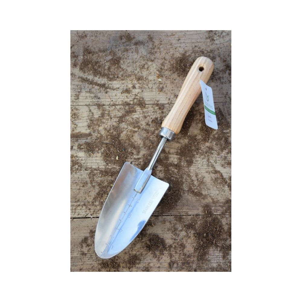 Zahradní stěrka s odměrkou je nástroj vyrobený z vysoce kvalitní nerezové oceli. Dřevěná rukojeť zajišťuje stabilní držení nástroje při práci. Stěrka určená k sázení a ošetřování rostlin doma, na balkóně i na zahradě. Díky odměrce snadno zasadíte rostliny do patřičné hloubky.