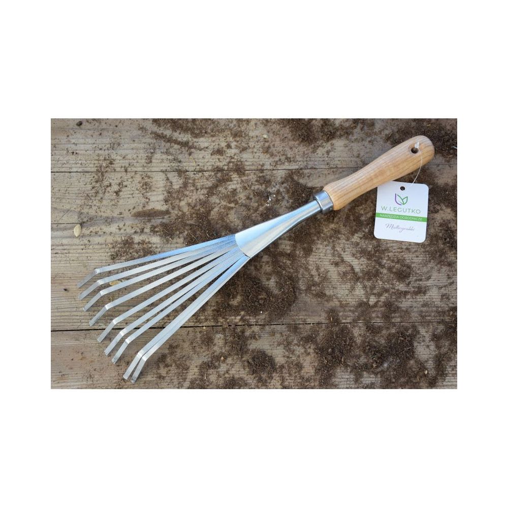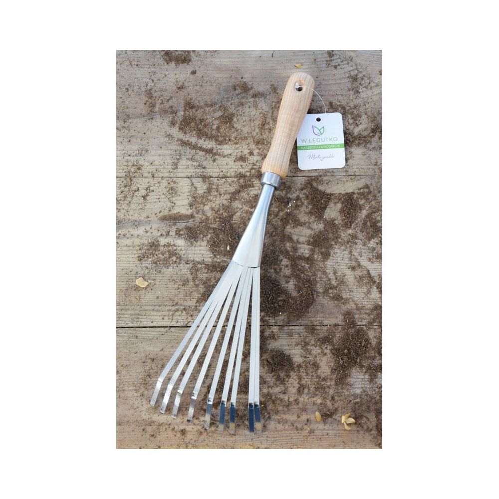 Univerzální zahradnické nářadí, nezbytné pro každý pozemek. Hrábě na smetáky jsou ideální pro hrabání mezer mezi rostlinami. Jsou vyrobeny z nerezové oceli s dřevěnou rukojetí.