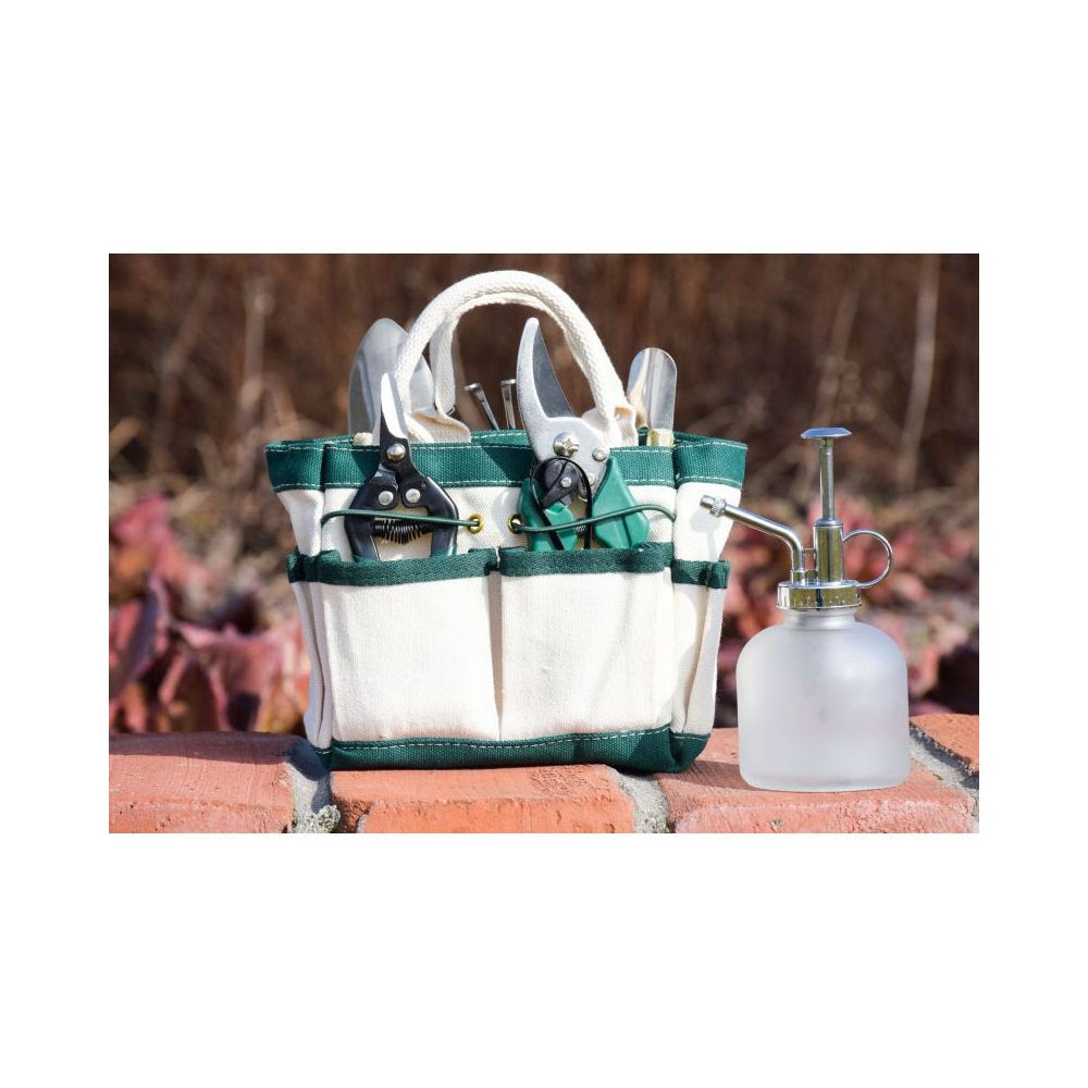 Zajímavá nabídka pro lidi, kteří mají rádi vše pohromadě na jednom místě. Mini taška vybavená veškerým základním nářadím vám umožní začít pracovat na zahradě mrknutím oka. Sada obsahuje: lopatu, hrábě, dva zahradní nůžky a zavlažovač.