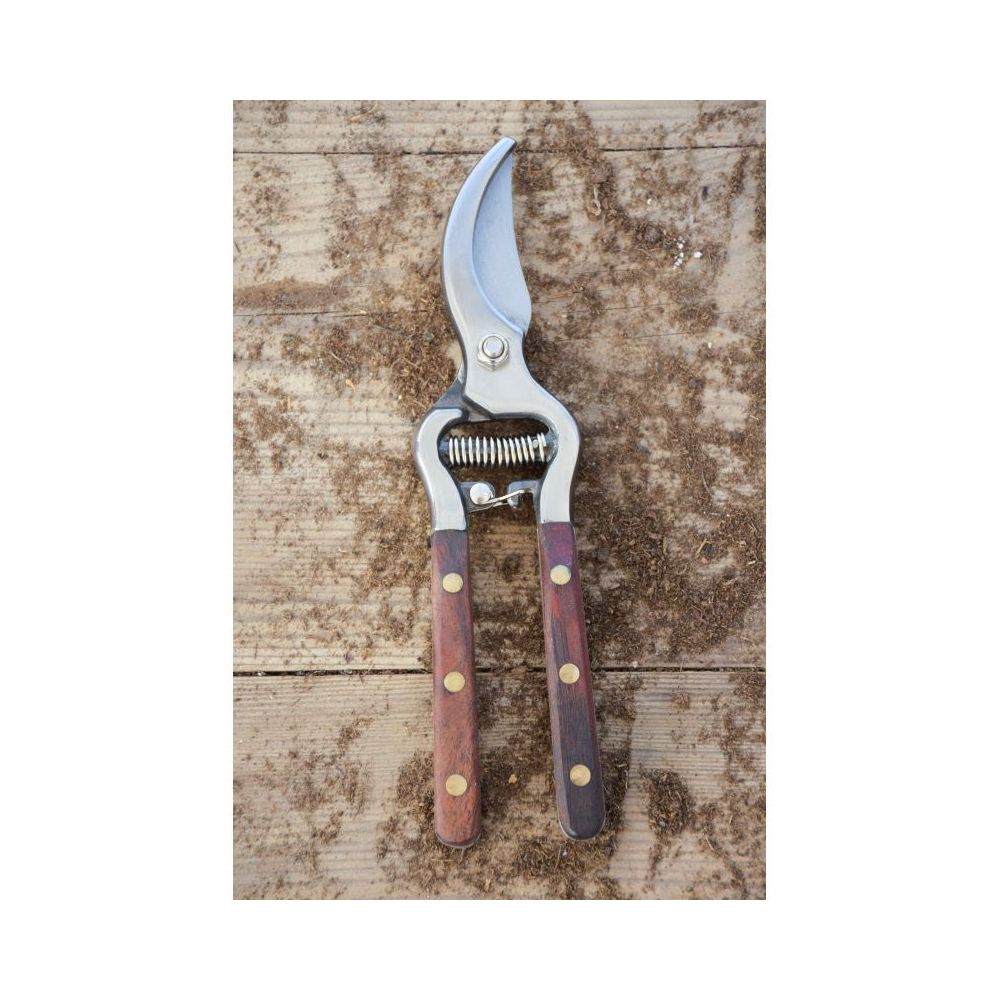 Kvalitní zahradní nůžky ve vintage stylu jsou funkční a zároveň designové nářadí, které se skvěle hodí pro práci doma i na zahradě. Vyrobeno z vysoce kvalitní oceli, zakončené dřevěnou rukojetí. Použití: stříhání květin, malých větviček, výhonků stromů a keřů. Nezbytný nástroj pro milovníky rostlin.
