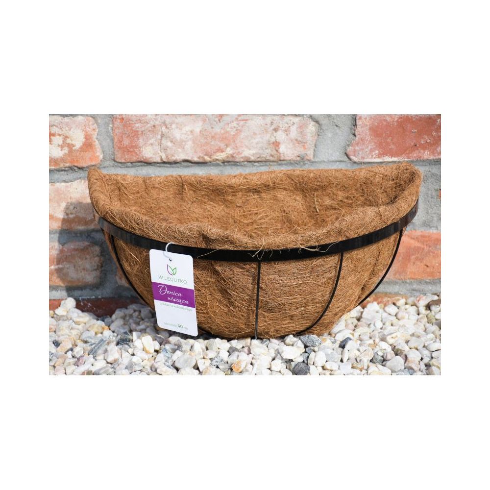 Dekorativní závěsný květináč s vložkou z kokosového vlákna ve tvaru půlkruhu, ideální pro zavěšení na zeď nebo balkon. Jeho přirozený vzhled přitahuje pozornost a dokonale prezentuje dekorativní hodnoty rostliny. Vložka z kokosového vlákna je biologicky odbouratelná a zajišťuje vynikající cirkulaci vody a vzduchu.