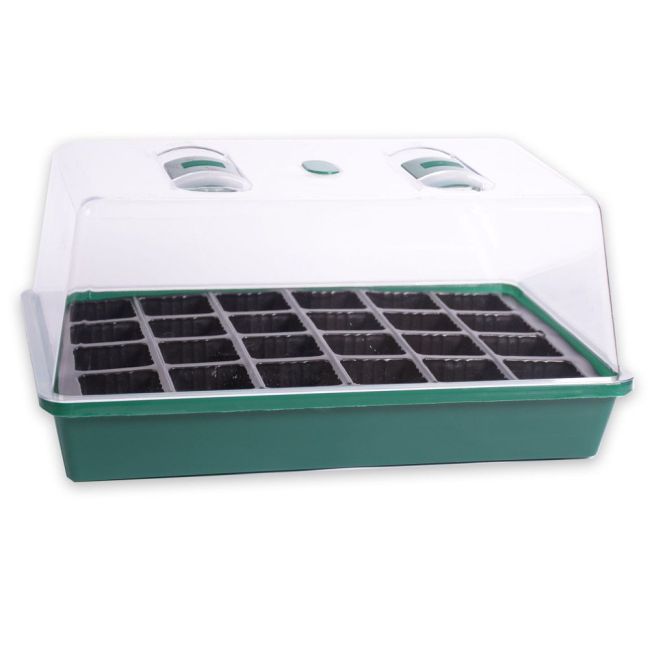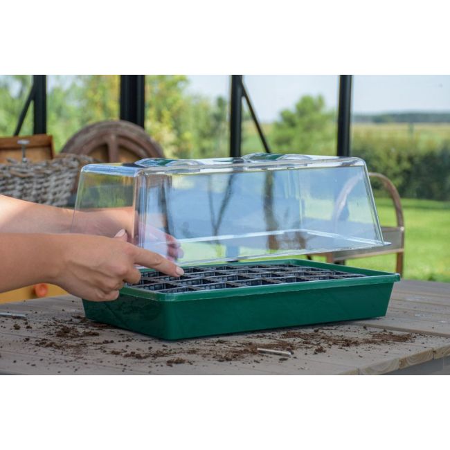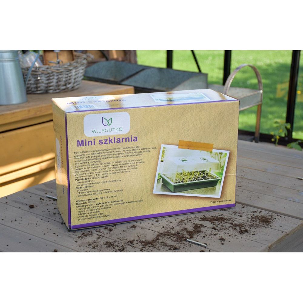 Mini skleník je produkt určený k produkci sazenic. Poskytuje optimální podmínky pro růst a vývoj rostlin v krátkém čase. Průhledné víko nádoby umožňuje dobrý přístup světla a udržuje správnou vlhkost substrátu a díky otvorům i dostatečné větrání.