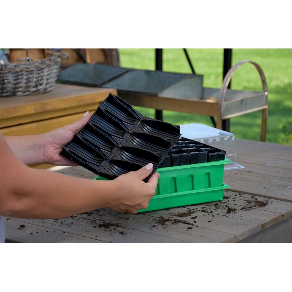 Díky svým malým rozměrům se nádoba vejde na domácí parapet nebo balkon. Je velmi funkční, takže se dá používat po celý rok. Po vyjmutí pěstebních tácků lze základnu použít mimo jiné: pro pěstování mikrolístků, výsev řeřichy nebo ovsa na lignin nebo vatu.