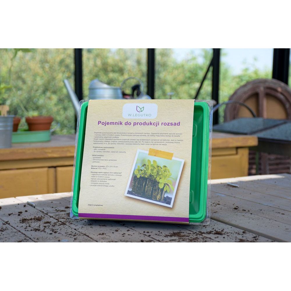 Nádoba je určena pro domácí produkci sazenic. Poskytuje optimální podmínky pro růst a vývoj rostlin v krátkém čase. Průhledný kryt umožňuje rostlinám dobrý přístup ke světlu a optimální půdní vláhu.